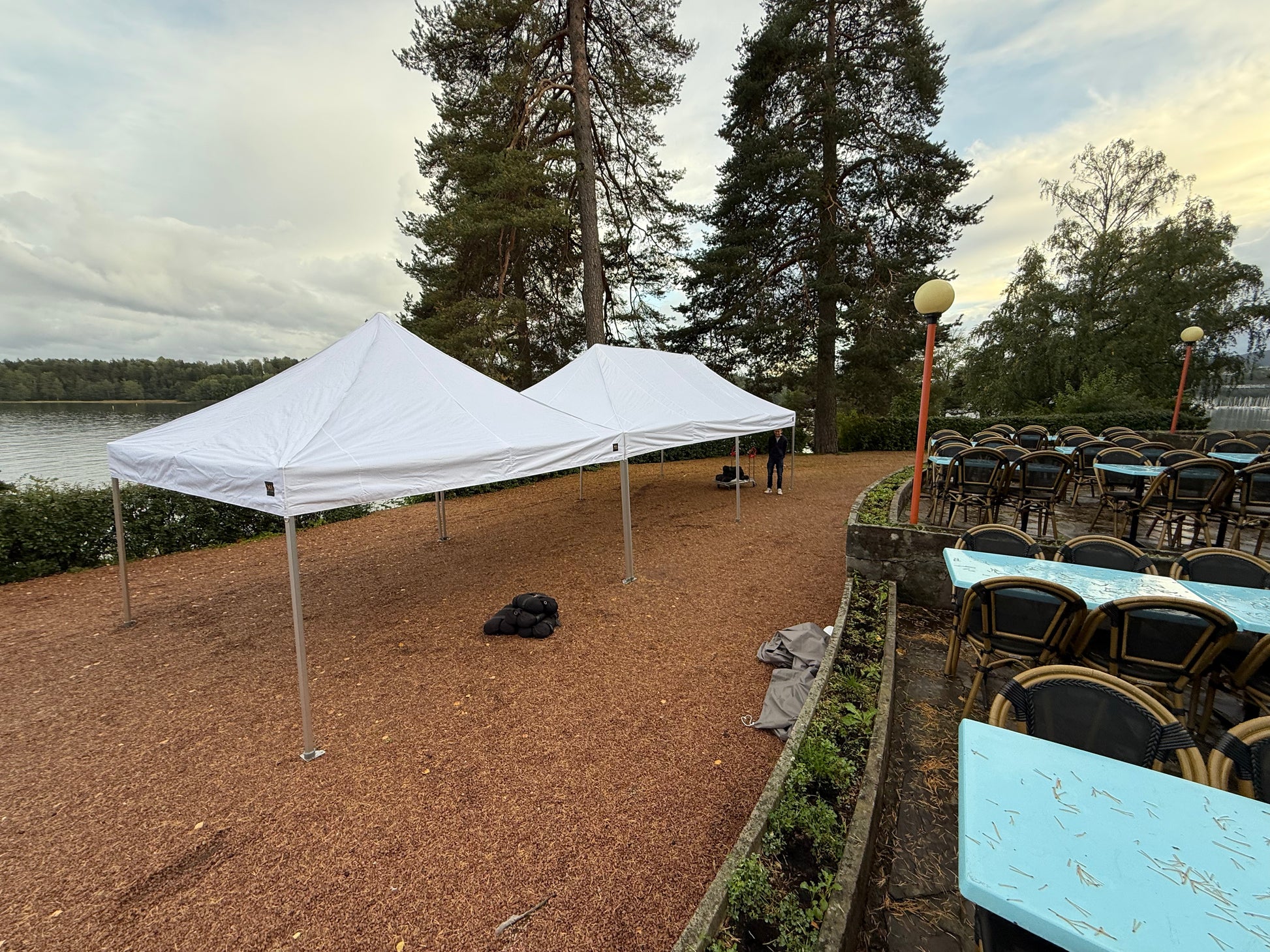 The tent must be transported, rigged up and rigged down by Raanaas Utleie. Rigging up and down is included in the price, but shipping must be added separately and is additional. The price includes 8 sandbags of 30 kg that are attached to the legs to secure the tent (as we rig up and down), this is mandatory and cannot be opted out.